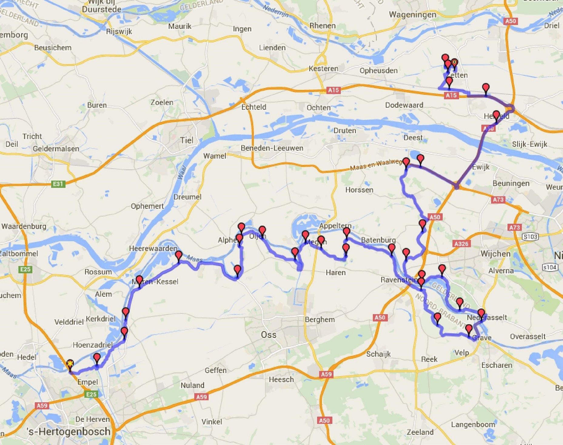 De route gesplitst in deel 1 en deel 2.